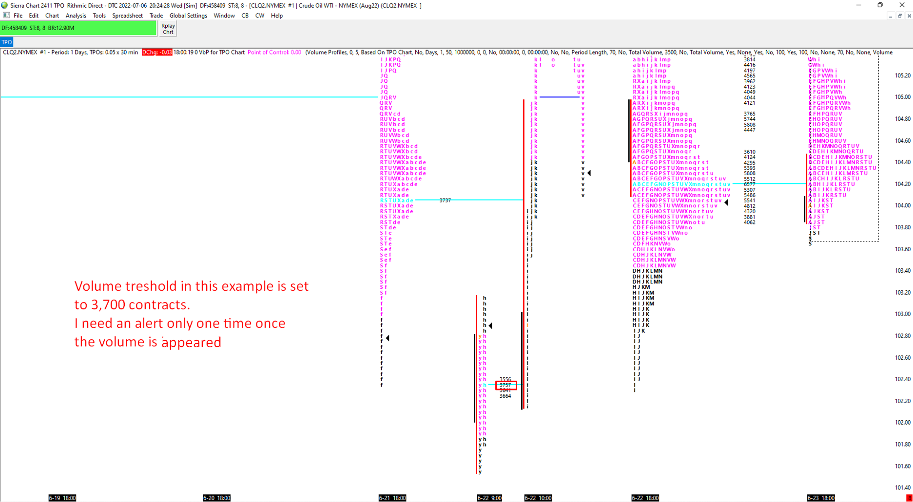 Good evening, I need some food for thought please. I need a formula, a studie that will alarm when value X is reached in the TPO chart. How could this be implemented? Please see the attachment I would be very grateful for your help marcoh Date Time Of Last Edit: 2022-07-06 20:30:31