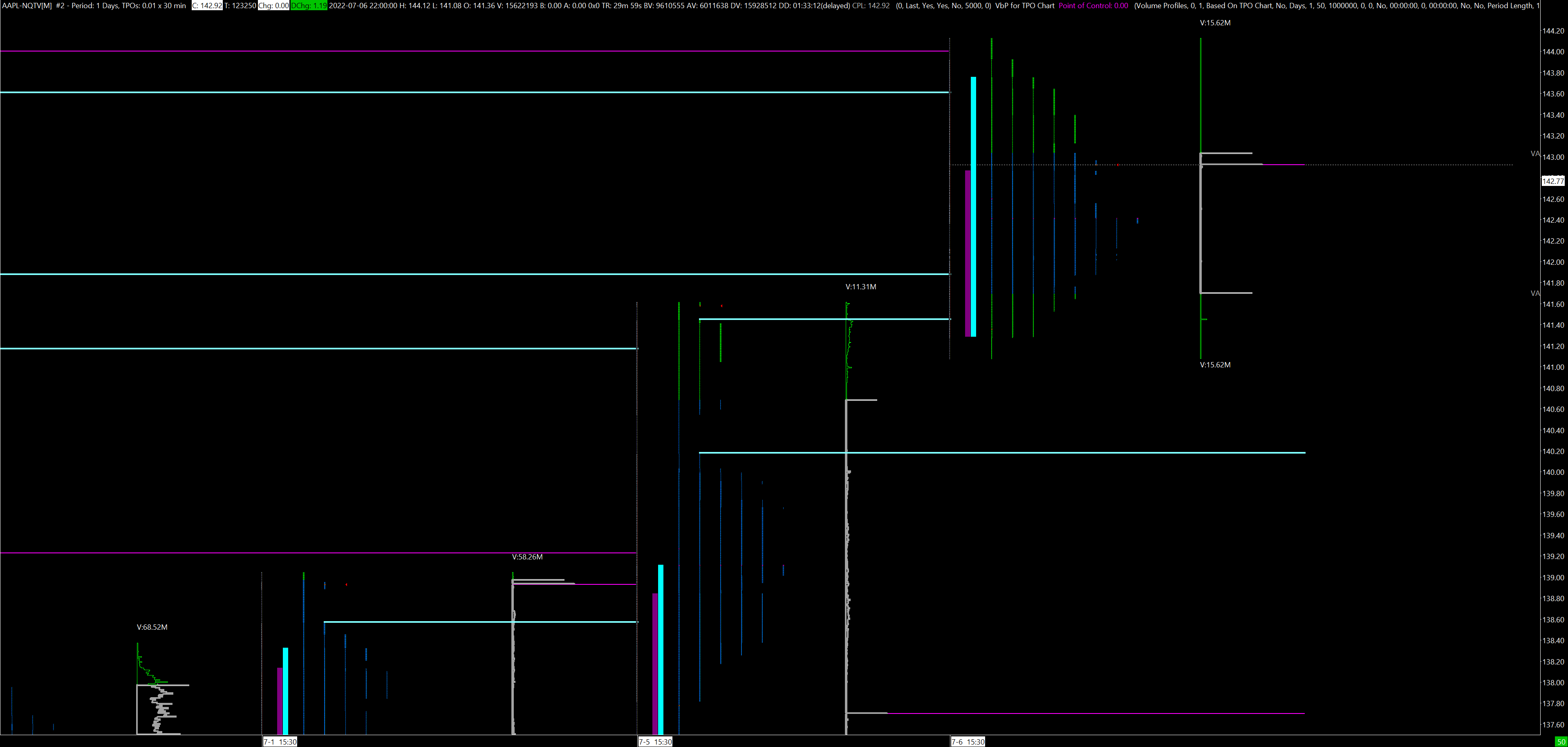 Hi when i use market profile on AAPL and set a volume profile alongside the TPO profile, the volume profile is like a vertical thin profile, see photo attached. Whats the reason for that? i have the maximum volume bar width set to "period length" and volume bar width percentage to 100 but still the same issue. Do you have a solution please? Thanks |