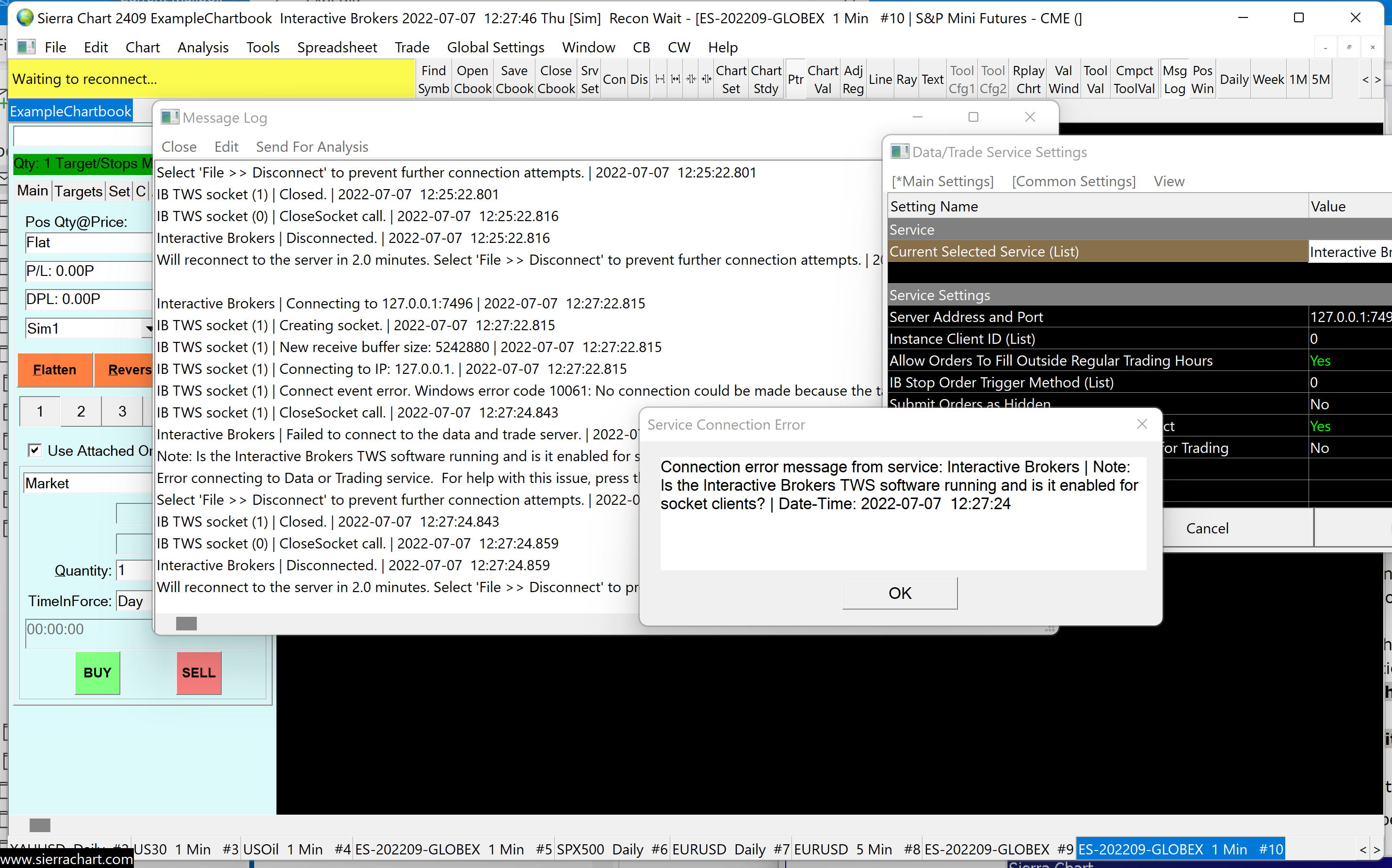 Hello! I am new to Sierra and am having trouble connecting the data. I have attached the screen shot of what I am seeing. Is there someone that can help me with this? Brandt Edwardshttps://www.sierrachart.com/image.php?Image=1657196868138.png |