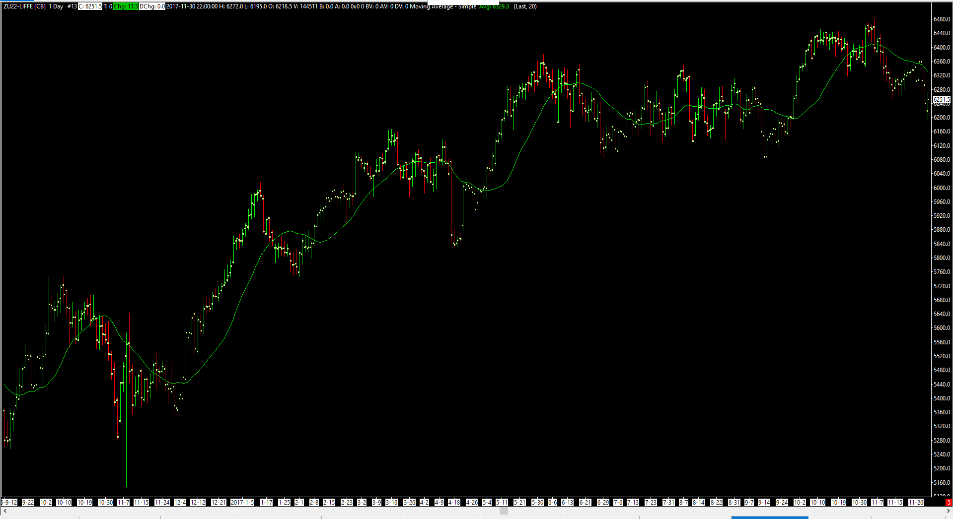 False values showing when loading historical chart and when loading that particular contract than the value are shown correct and this is the same when loading the contract with continuous contract rollover is on or off. I am also attaching two screenshots one with the contract loading historical values and other with a particular contract open ( june 2017 ) for FTSE 100 futures (Z symbol code ) ( Liffe exchange ) https://www.sierrachart.com/image.php?Image=1657204311397.png https://www.sierrachart.com/image.php?Image=1657204347444.png |