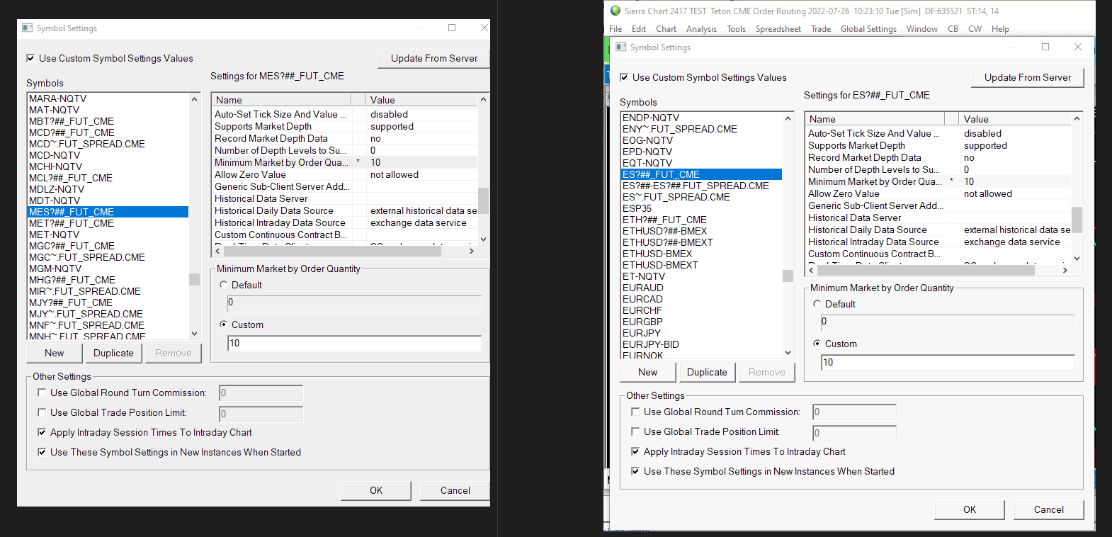 This is Sub-instance 2 and I put 2 DOMs up one with and one without. The pic shows the chart settings... I also included the Symbol Settings for the 1st instance. The 2nd instance Symbol Settings are set the same even though that shouldn't matter. |