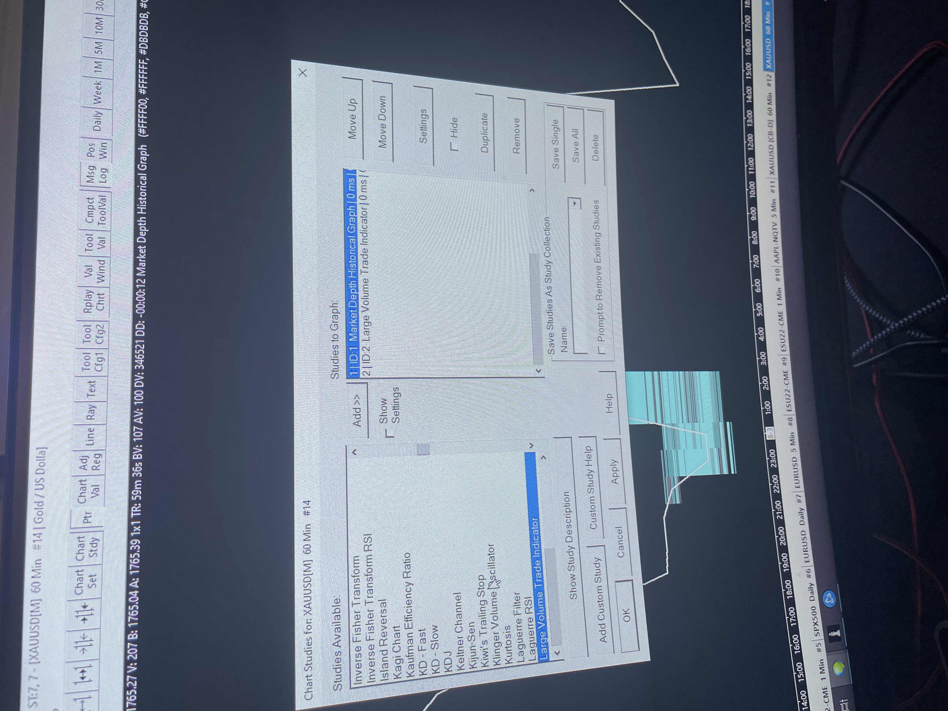 What would cause my study in this case the (market depth historical graph) to only show on this one part of the chart and my second study (large volume trade indicator) doesn’t show at all...it is not hidden.