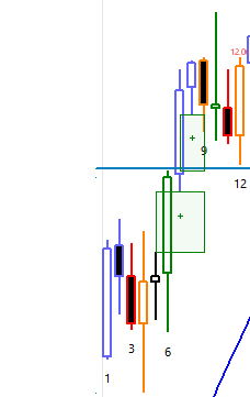 I am using Bardifference Study with Settings InputData1: Low InputData2: High InputData 1 Offset :0 InputData 2 Offset: 2 I want to draw a small rectangle between the bars if there is a gap between these two candles. With the rectangle covering the area of the gap Currently, I'm combining this study with "Color bar based on alert condition" and adding a + sign if there is a Gap, I wanted to know if there is a way to just draw a rectangle in that area instead. |