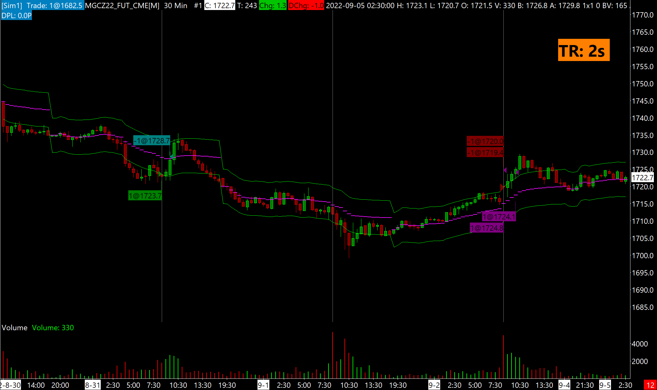 I have somehow successfully created my first spreadsheet trading system. I've only noticed one issue with it during backtesting and would love some help figuring it out. The system is supposed to take a trade at 08:30:00 if certain conditions are met. On one day, a long was triggered, stopped out, then another long triggered and stopped out again. I only want it to trigger one trade per day, if the conditions are met. The conditions were met, but 2 trades were triggered. See the second trade on the image. https://www.sierrachart.com/image.php?Image=1662850071349.png I thought this may be because it was using the whole candle at 08:30:00, not just the candle start time. I went in and changed the settings in the spreadsheet to "signal only once per bar," as in the other attached image, but it didn't change anything. Am I missing something? Is there some setting to trigger the trade only at the open price of the candle? I thought using the B3 value in my spreadsheet calculation would handle this, so I'm kind of at a loss, especially with the "signal only once per bar" set to yes. Thanks! |