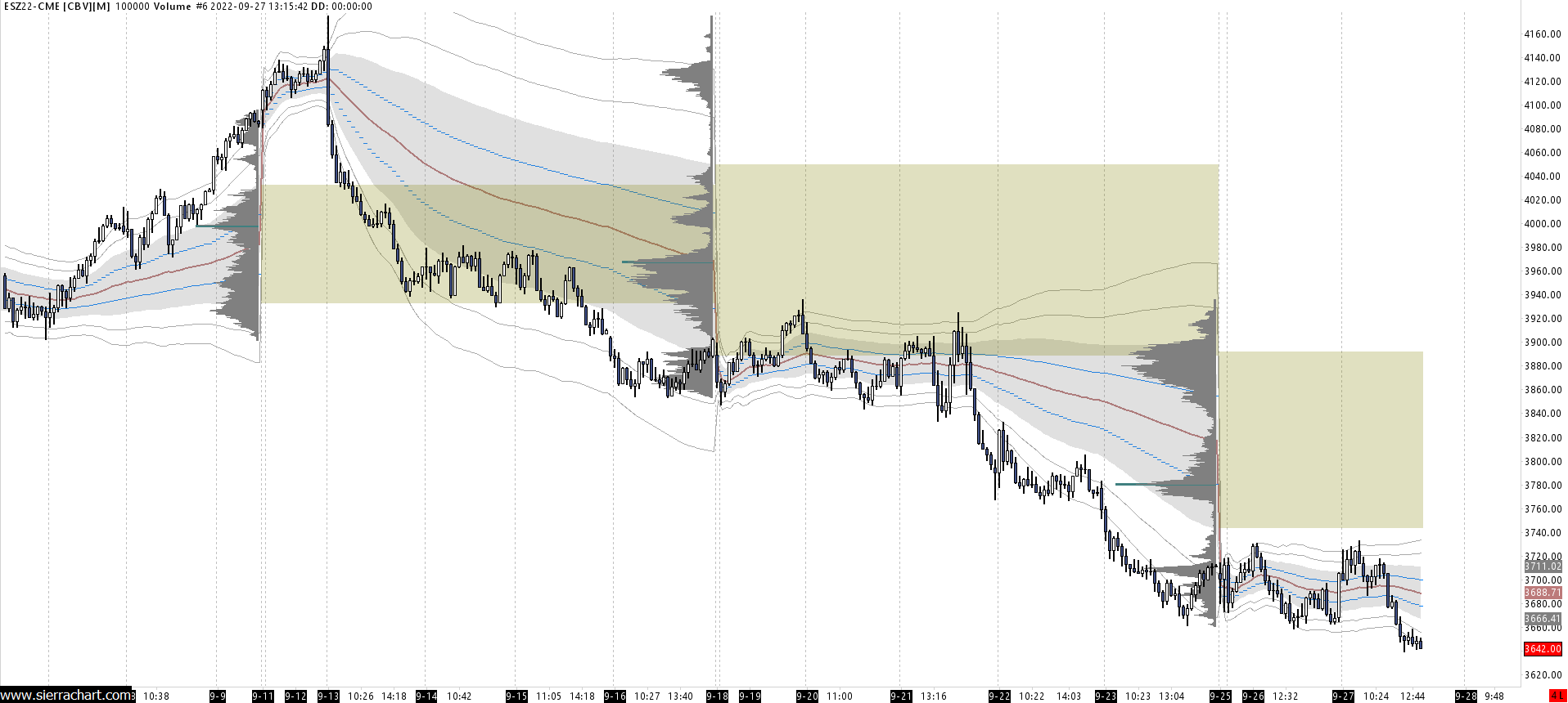 We opened your Chartbook again and the link below shows you what we see. Everything looks good, and we see the weekly profiles as expected. https://www.sierrachart.com/image.php?Image=1664900513837.png Your data does not look correct around between the 14th and the 19th. You should delete the data from just before then and redownload and see if it corrects the issue you are having. Refer to the following instructions: Data Errors or Spikes in Charts, Flat or Flat Line Graph, Compressed Graph, Errors with Date/Time Values: 2.1.2 Deleting and Re-downloading Data. (Easier and Recommended Method) We do not see the blue error in the candles when we open your chartbook. Deleting the data from the one chart should resolve the issue for all your charts, as it really seems there is some incorrect data around the 14th/19th. For the most reliable, advanced, and zero cost futures order routing, use the Teton service: Sierra Chart Teton Futures Order Routing |