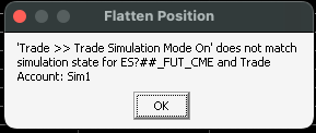 Hi, I have an open trade in my sim account from a while ago that I was unaware that it was open. I have tried switching back to sim mode and flattening the trade but it will not let me. It is weird because it is a CME futures contract but with no month. I have attached some screen shots that will hopefully help you see the problem. Thanks |