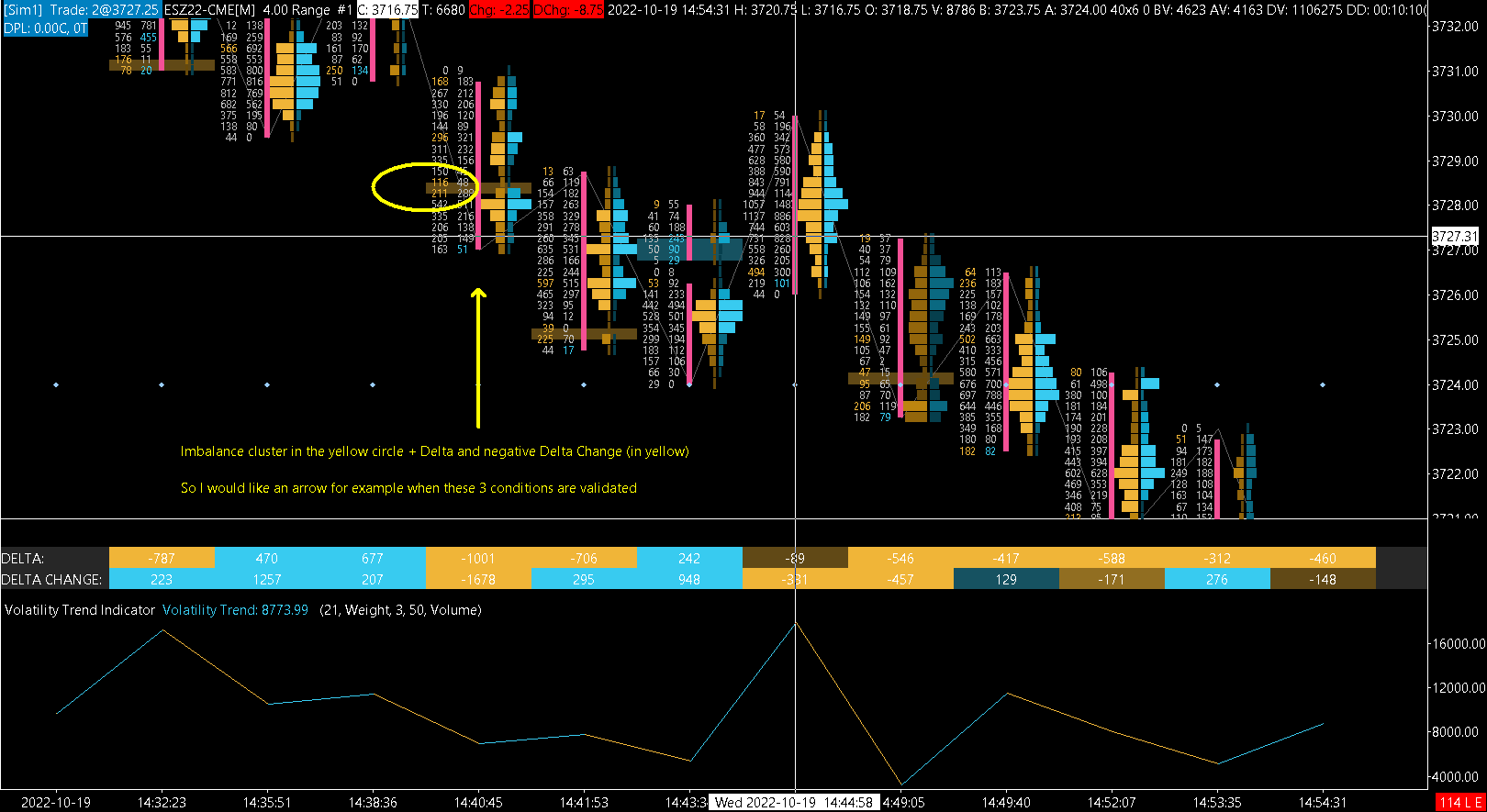 Hello, How do I add an alert like an arrow for example, based on multiple studies? I would like to have an alert when the Delta + the Delta Change is positive/negative + an imbalance cluster. I have the studies of these 3 elements but how to make a common indicator for these 3 studies? I add an image of my chart for a better understanding : https://www.sierrachart.com/image.php?Image=1666193506955.png Thank you in advance! |