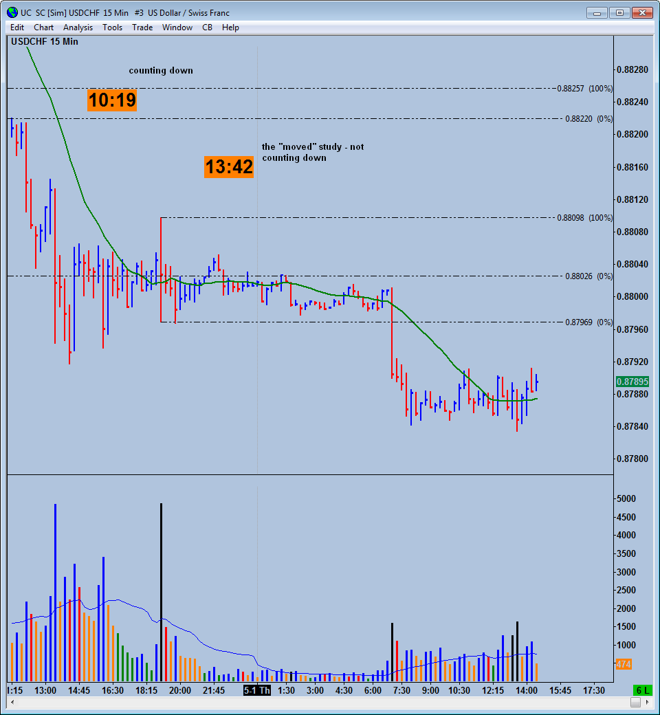 Hi, Since the latest update (1130) i've had an issue with the countdown timer study. Before this update I was able to click and drag the timer anywhere on the chart. So that it wasn't covering bars etc. Now when I click and drag it it defaults back to the same position but I also have another copy of the timer on the chart. This copy doesn't tick down but remains frozen at the time I clicked and dragged it. Any ideas how to stop this? Screen shot below. |