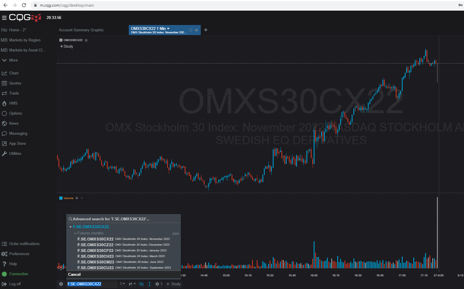 Hi, Today i have talked to CQG. Now i get the feed to work in CQG:s desktop solution. See attached picture. They have changed the symbols for this feed. I have tested the new symbol in Sierra Charts but i still get messages about wrong symbol. Even tried to setup a new symbol with the same result. I copied the old one and changed name to F.SE.OMXS30CX22. Even tried that one for december. Which symbol do you think I should use? Is it always the "contract symbol" that apply? Probably, i do something wrong in the setup fase. Thank you |