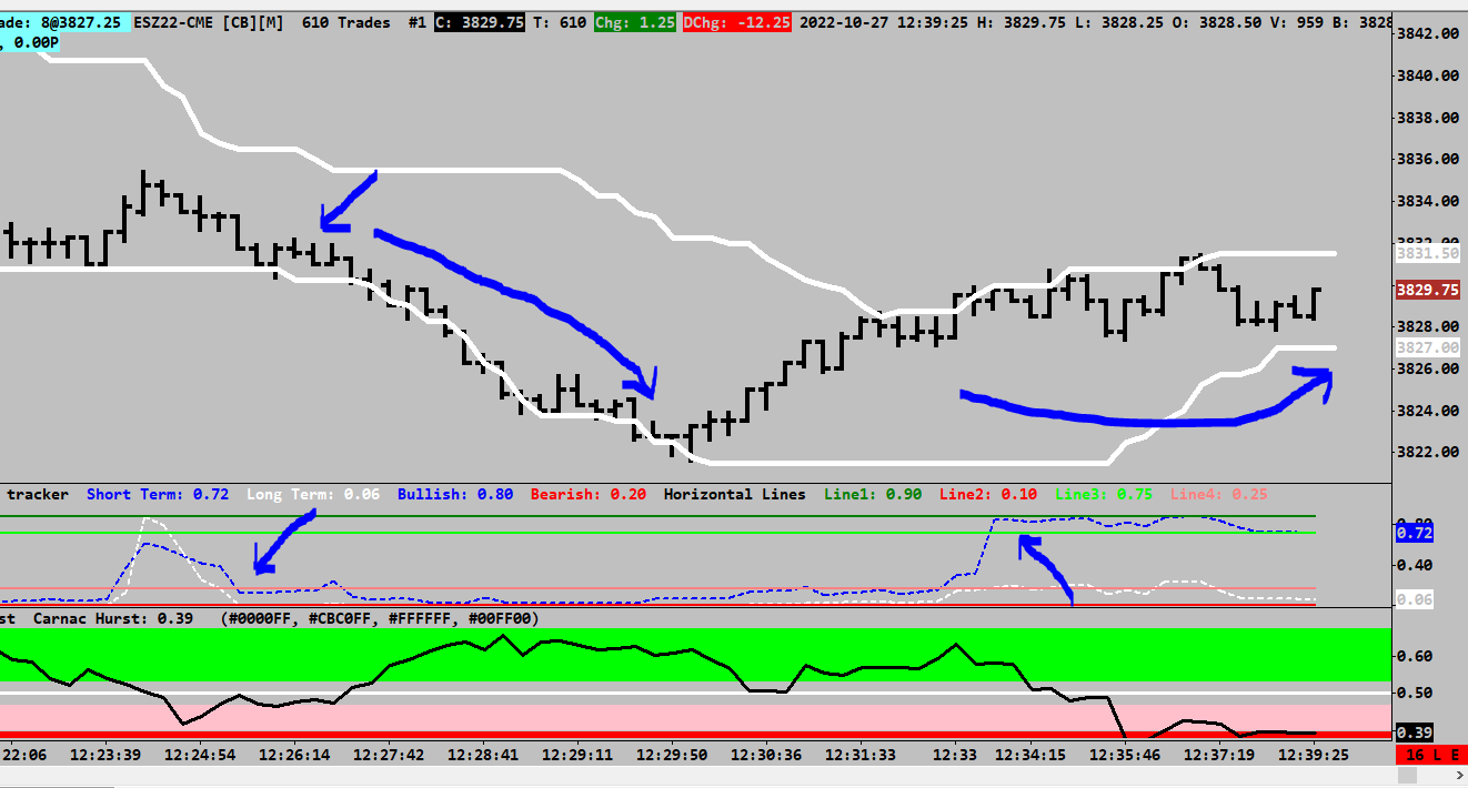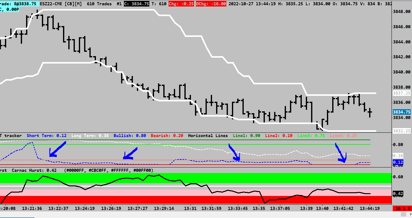 Examples from today, October 27, 2022 - Three charts are attached. All three show the Short-Term informed traders being between 75% to 100% bullish or bearish and how they moved the ES today.