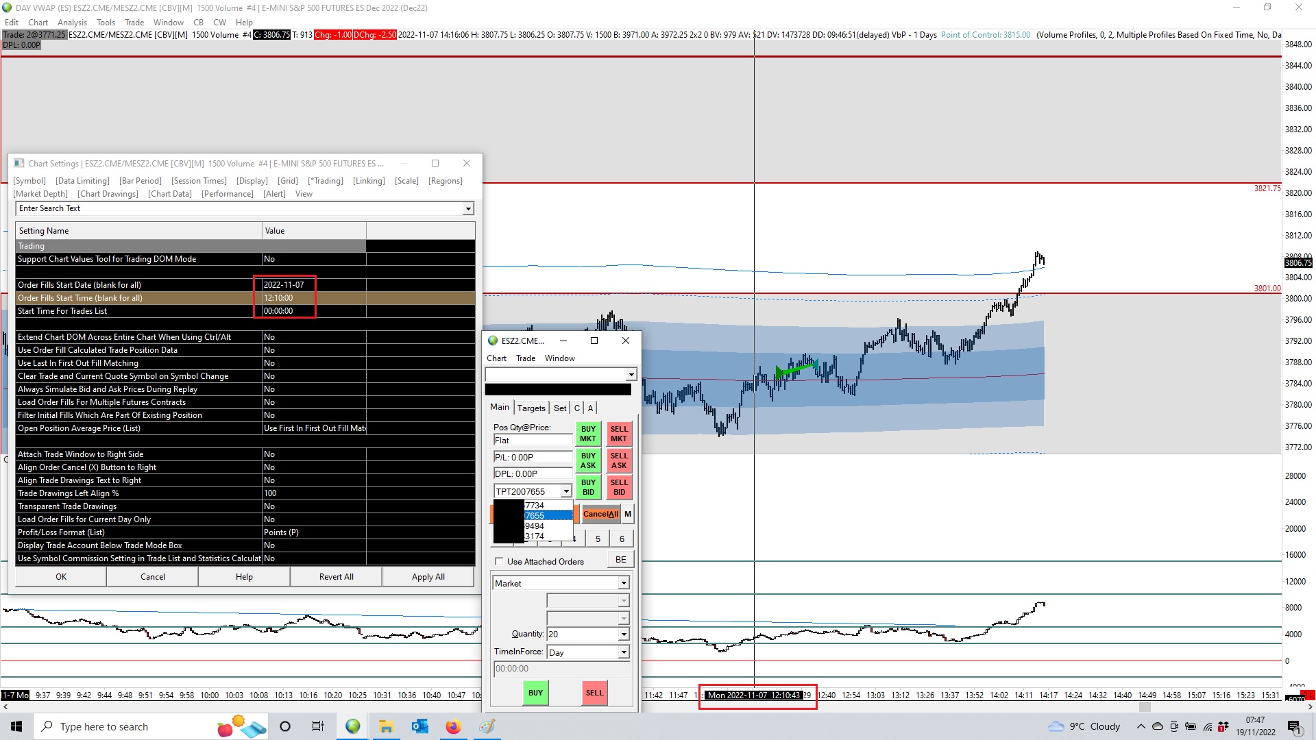 The trade fills taken on the First Initial Account (Ending 655) still appear, which is a proof my setting are correct. There are 4 accounts under the same login credentials. Once I had to switch to the second, thrid and now fourth account Fills Stop showing, no matter which account I trade or switch.