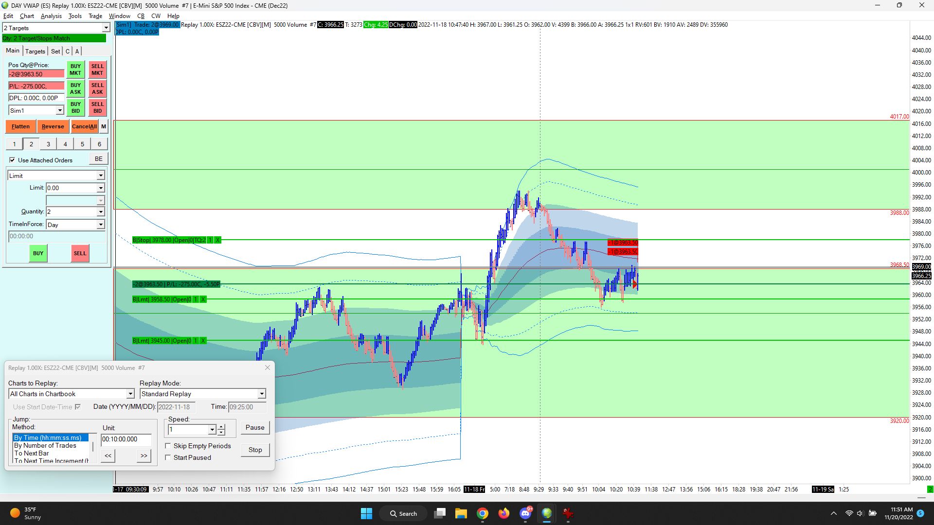 I have an issue with making trades when in simulation mode. Enclosed you'll find a JPEG of my setup. I use a preset configuration called "2 Targets" (Target 1 is 20 ticks, Target 2 is 30 ticks, and Stop All is 20 ticks). I'm doing a market replay. When I enter the trade, I click on "SELL MKT" to get my markings. You could see the 2 contracts set with my targets and stop. For some reason, after a minute or so, my stop line disappears. I don't why it does this. Because of that, I'm unable to make real time adjustments. In other cases, both my stop line and one of my target lines disappear. Mind you, at no point does the market hit my stop line, which would cause it to disappear. I tried re-installing Sierra Chart but I keep the same results. Could you offer solutions? Let me know if you need more information.