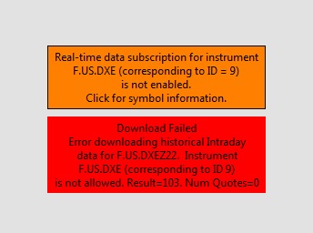Triggering next historical data download in queue. | 2022-11-25 18:46:59.286 HD Request # 44 | Downloading Intraday chart data for F.US.FDXMZ22 to the file F.US.FDXMZ22.scid. Service: eurex | 2022-11-25 18:46:59.286 HD Request # 44 | Download start date-time: 2022-11-25 18:46:33.000000. File last date-time: 2022-11-25 18:46:33.266000 | 2022-11-25 18:46:59.287 HD Request # 44 | Using server: ds24.sierracharts.com port 10150 | 2022-11-25 18:46:59.287 Socket (6) | Creating socket. | 2022-11-25 18:46:59.287 Socket (6) | New receive buffer size: 5242880 | 2022-11-25 18:46:59.287 Socket (6) | Connecting to IP: 154.14.194.212. | 2022-11-25 18:46:59.287 HD Request # 44 | Setting DTC encoding to Binary VLS | 2022-11-25 18:46:59.360 HD Request # 44 | Sending historical data logon request message. | 2022-11-25 18:46:59.360 Socket (7) | Socket gracefully closed by remote side. | 2022-11-25 18:46:59.432 Socket (7) | Closed. | 2022-11-25 18:46:59.432 HD Request # 44 | Requesting Intraday data. Start date-time: 2022-11-25 18:46:33. Record interval: 0. Symbol: FDXM202212_FUT_EUREX | 2022-11-25 18:46:59.498 HD Request # 44 | Decompressing data. | 2022-11-25 18:46:59.532 HD Request # 44 | Receiving Intraday data for F.US.FDXMZ22 starting at 2022-11-25 18:46:33.266000 | 2022-11-25 18:46:59.533 Socket (6) | CloseSocket call. | 2022-11-25 18:46:59.534 Historical data download thread signaled to stop. | 2022-11-25 18:46:59.534 Socket (6) | Shutdown started. Waiting for graceful close. | 2022-11-25 18:46:59.534 HD Request # 44 | Timestamp of first Intraday data file record written: 2022-11-25 18:46:48.882000. | 2022-11-25 18:46:59.534 HD Request # 44 | Received 8 Intraday data records from 2022-11-25 18:46:33.266000 to 2022-11-25 18:47:01.643000 (28.4 seconds) and wrote 7 records for F.US.FDXMZ22 | 2022-11-25 18:46:59.535 HD Request # 44 | Add time&sales data | Remembered last file record date-time: 2022-11-25 16:47:01.643000 | 2022-11-25 18:46:59.535 HD Request # 44 | Completion time: 0s. | 2022-11-25 18:46:59.535 HD Request # 44 | Intraday data download complete for F.US.FDXMZ22. Unique request ID: 38 | 2022-11-25 18:46:59.535 Removing historical data download ID 38. | 2022-11-25 18:46:59.535 Real-time Intraday chart data file updates started for F.US.FDXMZ22 | 2022-11-25 18:46:59.535 Intraday chart data file opened for F.US.FDXMZ22 | 2022-11-25 18:46:59.535 HD Request # 44 | Enabling Intraday chart updating for symbol. | 2022-11-25 18:46:59.535 |