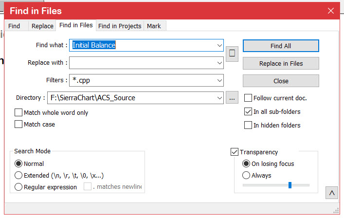 It is in Studies6.cpp I use NotePad++ as a secondary editing tool while using VS2022 as my main tool. A capability of NotePad++ is the ability to search for text within a file, file type, directory, etc. This is really useful as I look for instances of code or structure/property/variable definitions in .cpp or .h files within my development dir or SierraChart\ACS_Source Hope this helps JohnR Date Time Of Last Edit: 2022-12-09 17:50:35