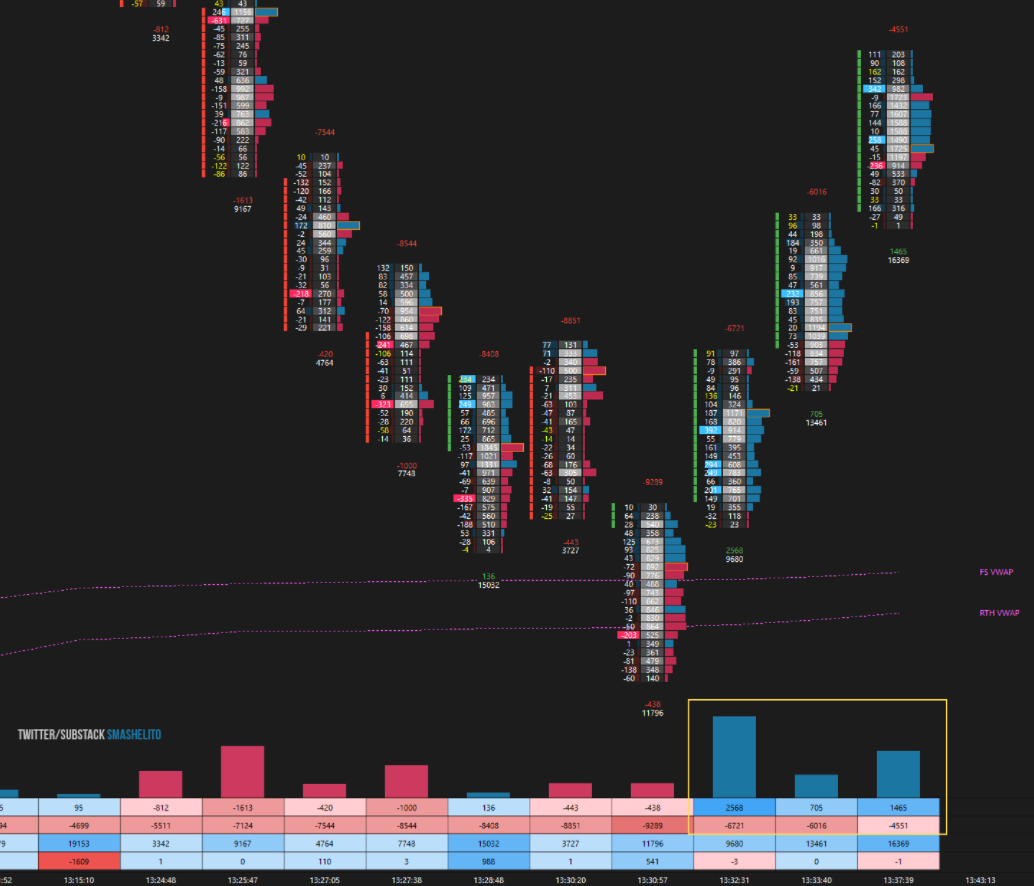 Hello, I am curious on how on this picture (@smashelito from Twitter) programmed the volume indicator above the number bars (the yellow rectangle), see picture attached. How could I do the same on my charts? Thank you |