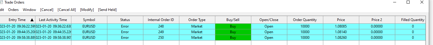 I am trying to initiate trades that I keep getting contract mapping ID errors for. This is my first time trying to get trades done with Sierra and for some reason when I follow the directions to resubmit, I keep getting the same errors. Here are the directions according to this site, and here are the screenshots I am getting. I would ultimately just like to place trades and cannot because of this error. I am going into the chart settings and also cannot isolate this problem Thanks QUOTE from table of contents : Solving Contract ID Mapping Error when Submitting Order [Link] - [Top] With the CQG Web API, when submitting a trading related request to CQG for a particular symbol, it requires a contract ID number. Therefore, when using the Trade and Current Quote Symbol setting in the Chart >> Chart Settings and you have enabled Use as Trade Only Symbol, when an order is submitted it will initially get rejected for that symbol. Below is an example of the rejection message. The solution to this is to resubmit the order since at the time of the rejection, the necessary contract ID number will have been requested from CQG. CQG WebAPI order update (Order reject). Info: Order Error - No symbol contract ID mapping. Unable to submit the order. Text: Parent order. Internal Order ID: #. Service Order ID: #. Symbol: F.US.MQOZ19." |