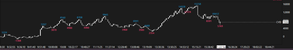 How can I have the cumulative delta total sum contracts of the swing high & low like the attached image?