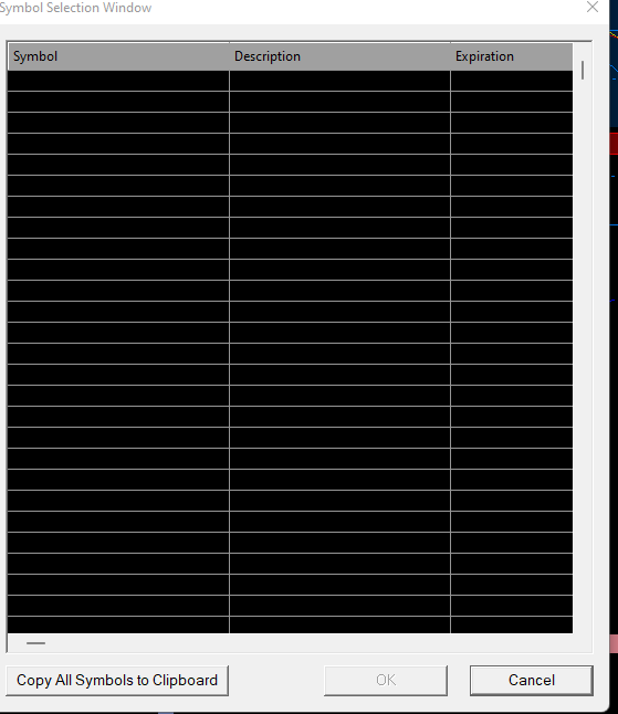 Hi my message log pops up completely blacked out. I have been trying to get btc usd thru binance or bitfinex. I follow the steps to to get new symbols and nothing the grid shows up blank It does this for everything chartbooks etc. I am afraid to update sierra because i don't want to lose my charts and I have only been a users for a month so i shouldn't need an update. |