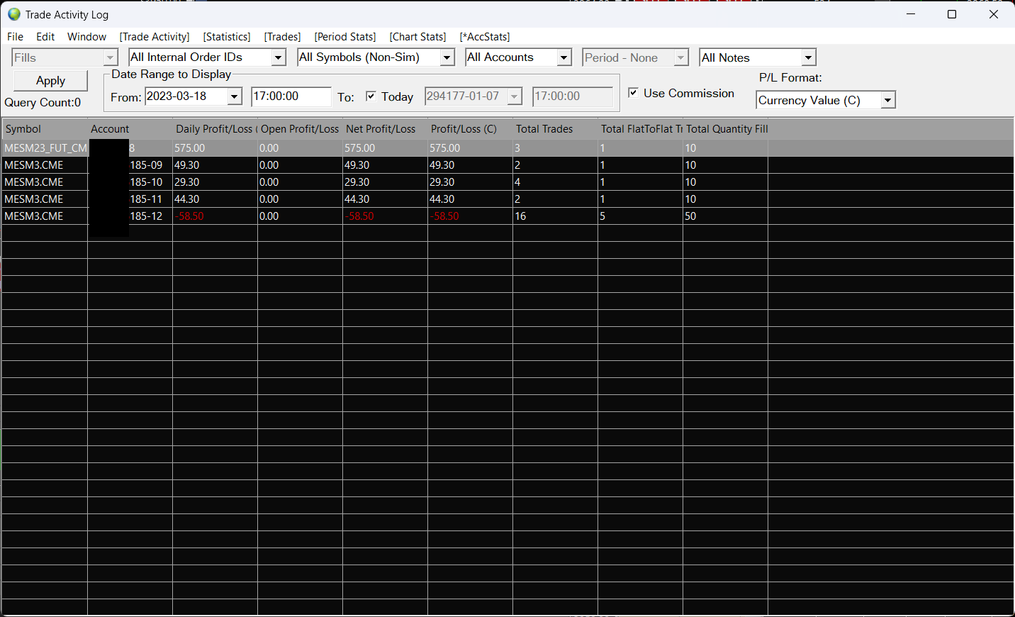 I am trading various accounts. When I switch between my Rithmic vs Teton accounts, the P&L shows differently and incorrectly for the opposite trading service. I have attached a trade log and also trade P&L reports. In the images I have attached I'm logged into Rithmic. I should be showing $23.05 for my Teton account instead of the $575.00 it is showing. All of these are live trades. If I log into Teton, the Rithmic P&L would be showing the major discrepancy. I also confirmed it's not a commission setting issue, as the issue is still present when omitting commissions. Is there anything I can do to fix this so that it shows the correct P&L? Thanks so much for the help! Date Time Of Last Edit: 2023-03-20 17:28:55