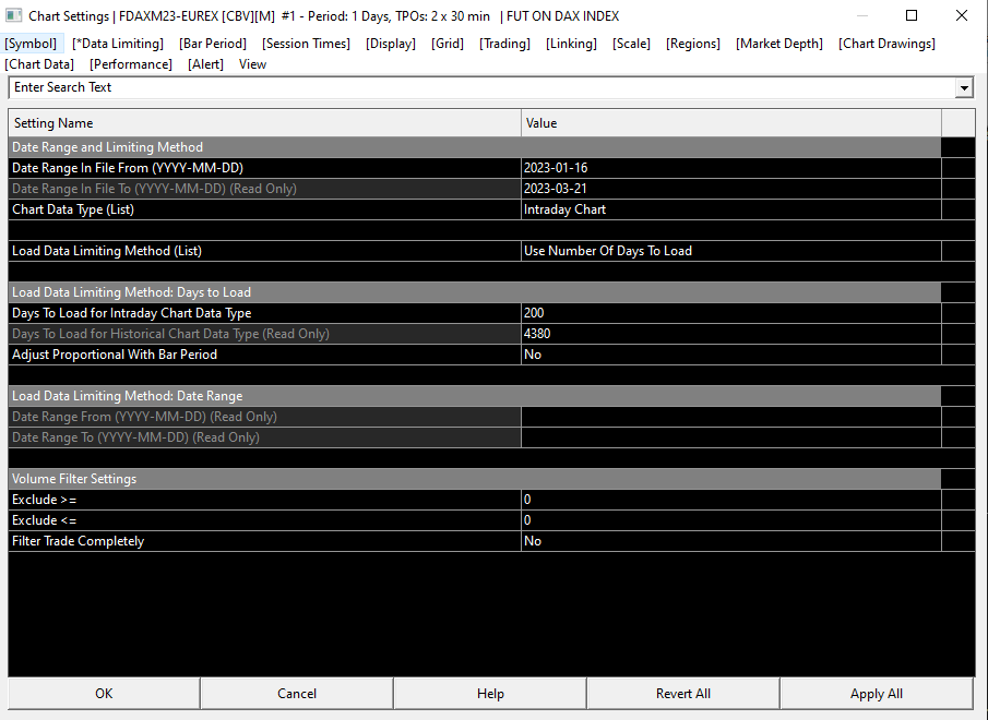 Hi again, manages to get the TPO chart back up, the problem I have now, is the TPO chart for 17.03.23, is preceded by the TPO for 14.12.22, so I am missing the last 3 months of contract on FDAX. Would you be able to please help? Please se attached screen shots. Thank you. |