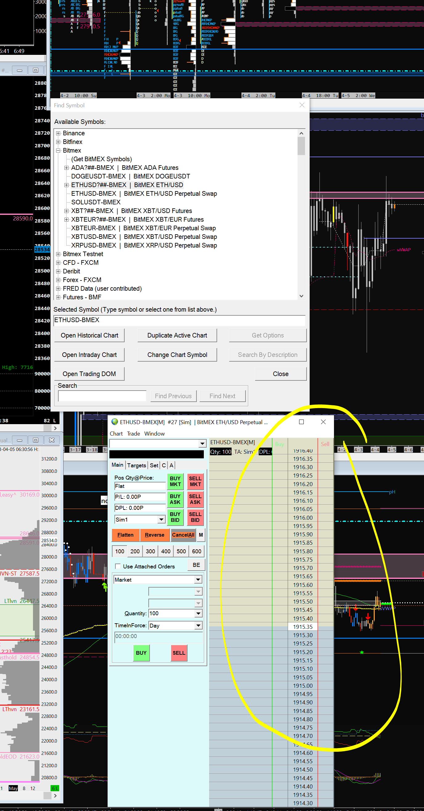 John, I don't look at eth as much as btc. I flipped to chartbook and looked at charts, then I realised nothing was moving or updating. I closed the chartbook and reopened it. And as you see just went to symbol and called up a dom. NOTHING. What is wrong, what do I do? BTC perp is fine. thank you, but help! |