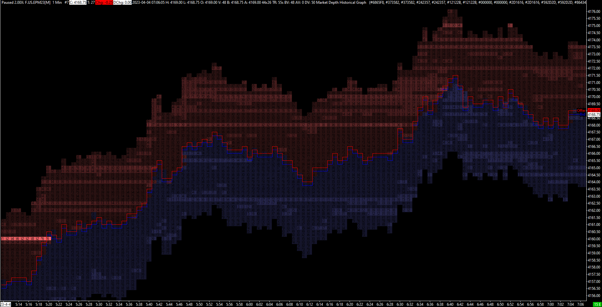 Thank you for replying. Correct. I am not seeing market depth data during the replay. The dom will stay stagnate as per the image I have attached while the remainder of my chartbook charts replays as normal. Yes, I see market depth data for the date and time I'm replaying, but only on the chart where the Market Depth Historical Graph Study has been applied. https://www.sierrachart.com/image.php?Image=1680931171227.png https://www.sierrachart.com/image.php?Image=1680931352745.png |
