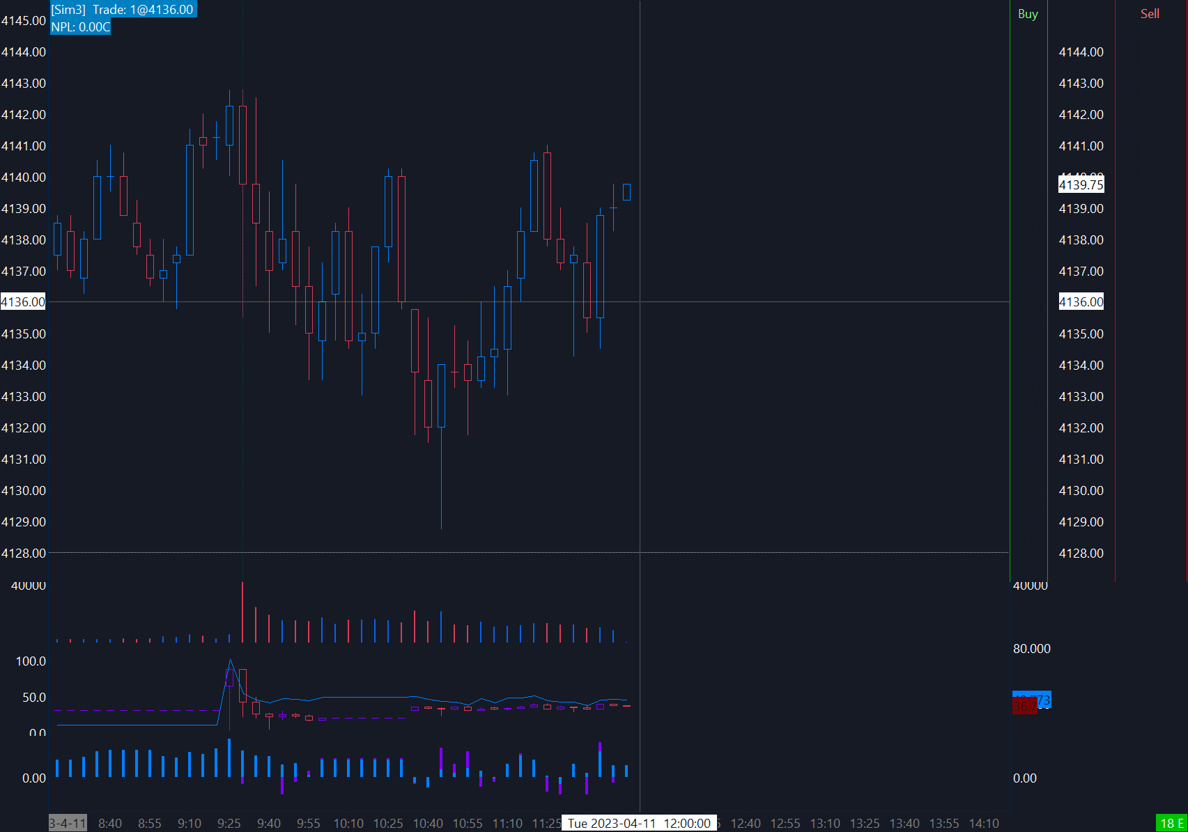 Both my tick and volume internal calculations are not making any sense after the SC update to Revision 45597 yesterday. I was forced to update after some incompatibility issue with the service I was using (Rythmic). For instance, both the percent tick calculation (100*{TICK-NYSE_NASDAQ_NYSEMKT}/({DTIS-NYSE_NASDAQ_NYSEMKT}+{UTIS-NYSE_NASDAQ_NYSEMKT}) on the bottom panel and the internal volume calculation (100*{NVOL-SP}/{TVOL-SP}) on the second to bottom panel have constant values from 10:00 to 10:30 on 4/11 (see https://www.sierrachart.com/image.php?Image=1681228508588.png). I have a redundant tick calculation in TV that does not show the constant values, and the tick values should not be constant across 7 subsequent 5 minute intervals. I did not have this issue before the update, and have seen this issue both yesterday and today.