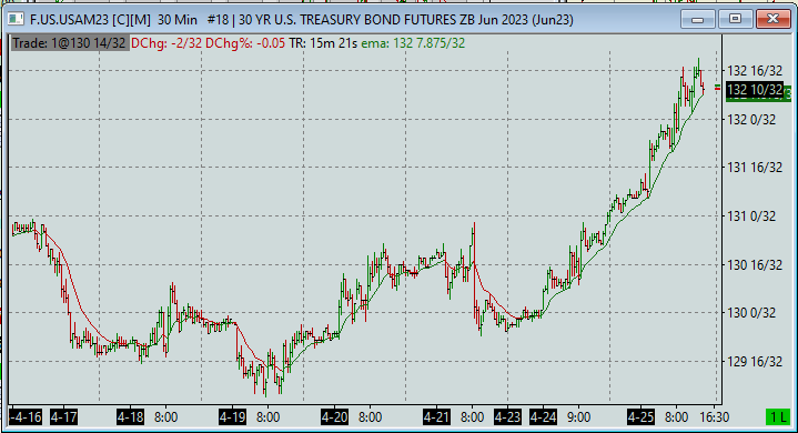 In the attached screenshot of ZB, the session start times are set at 5:00 pm CST, when the market opens everyday, and I believe the tracking of daily change should begin. However, in the screenshot, it shows the daily change is -2/32, but clearly, ZB is up a lot for the day. It should show daily change around 1 10/32. Looks like the chart is showing change from sometime late afternoon (not sure exactly when). What setting do I need to change to make this happen? Thanks. Date Time Of Last Edit: 2023-04-25 19:40:36
