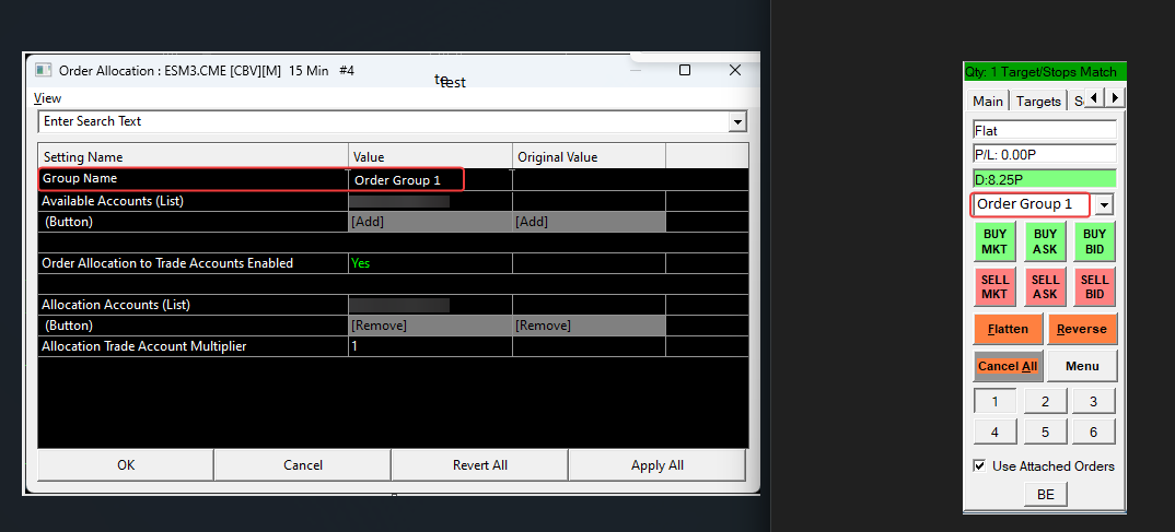 To add to this further. It would be great to have something like a "Group Name" for the order allocations. Then have this group name be available in the trade window drop down menu. Then from any trade window you could easily select an individual account or a group of accounts to trade. Example image attached: