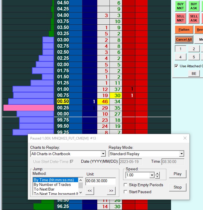 How to Show market depth during market replay using the DOM I can not find the setting to achieve this. Attached is a pic showing the missing date and my replay settings. tks |
