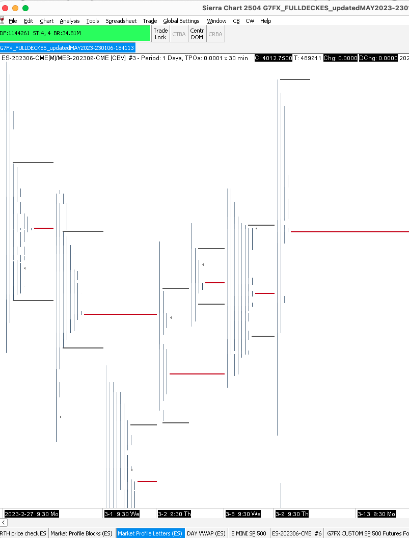 Everything is freezing up on my chart book and this is how the market profile (letters) look now. I had all chartbook setup correctly when I was using the SIM with ES and the only thing I did this morning at 0630 was change the symbol to MES and it has been a challenge after i change the symbol to MES.