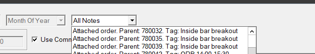 (with attached stop and target)I've defined a TradeTag for the orders (in this example the trade tag is "Inside bar breakout". My goal is to be able to sort the trade activity log by Tag, but Sierra creates all these Attached order tags (lots of them!). The attached image shows a selection of the notes in my trade activity log. This makes it not possible to sort by strategy/study. How can I make all entries under the trade tag ("Inside bar breakout")? The list is full of entries like Attached order. Parent XXXX. Tag: Inside bar breakout
