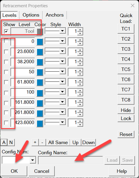 Soooo.... As with most things related to SC, if you think about it and learn enough about SC, there is usually a way to accomplish what you want. After digging, and trying various thought processes, I did come up with a way to do something similar to what you want to do. Change the Price levels tool from calculating % to ratios. My goal, was a fan that was based on 3 price/bar points. SC Gann fan tool only uses 2 points. Here is what I did to accomplish my goal. It is a hack, but I get what I want. You would do a similar project starting with the price replacement tool. 1 - Set up a configuration of the tool with the numbers you want for the levels and delete the rest of them. Also set the line values, color, style, etc. 2 - K E Y -- uncheck ALL of the levels -> EXCEPT <- the first one - tool. You always need this to be able to see the original drawing to be able to move change it. I made it a different color and line type to be able to see it easily. 3 - create ACSIL code that eithers starts your script via buttons or menu lines to the chart popup menu. SC provides examples for doing both. In this ACSIL code, you will do a search for a user drawn Price Retracements Tool. Once you find it, you then read the base price / bar points and other pertinent properties, then read each of the levels and get values, lines, colors, etc. still in the same set of code, Now draw a set of lines on your chart your ratio formula. You also will most likely want to write code to be able to delete that set of lines with one command button / menu choice. I chose to do this via a menu selection, while having the pointer on the bar that was the start of my drawing(s), and either deleted or deleted and then redrew, to simulate a move if it needed to match the move of the base object (Price Ret tool). Not smooth, or complete, but I have the tool I want on my charts and I have sufficient control. Also, don't forget to save the tool configuration. So, by doing it this way, I was able to retain all of the ability already built into a SC tool, in my case Pitchfork. It's ability to add, remove lines/levels, colors, etc. Basically I needed a way within SC to select 3 points and retain the ability to have all of the user popup menu, line, level and other property 'stuff' already taken care of instead of having to write all of that. I draw a pitchfork, then select a menu item to draw my fan for that bar, it reads the pitchfork info and then draws my fan, including if I use the cut ability of shortening an object. There are a few known quirks, like I needed a menu item to erase all fans, redraw all fans and change a single fans line properties to increase / decrease visibility. Your milage may vary. Hope this helps, John PS - I'm self taught C++ -- so there are surely more elegant ways to accomplish this task. |