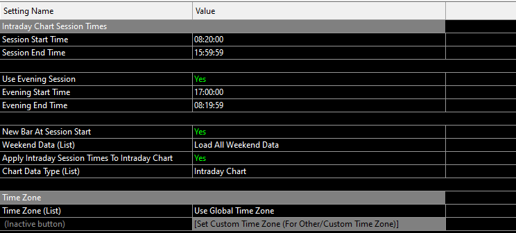 Please see attached screenshot Session Start Time: 08:20:00 Session End Time: 15:59:59 Use Evening Session: Yes Evening Start Time: 17:00:00 Evening End Time: 08:19:59 Date Time Of Last Edit: 2023-07-07 23:34:31