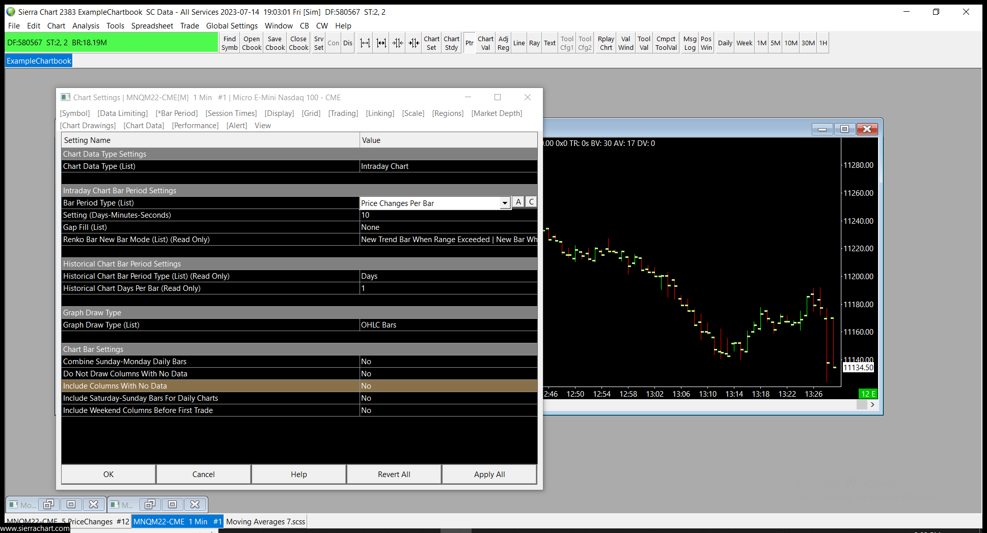 When I try to change my Data type to Price Changes Per Bar, the settings remains set to Days Minutes Seconds per Bar Settings as in the attachment: https://www.sierrachart.com/image.php?Image=1689361382464.png Please how can I resolve this. |