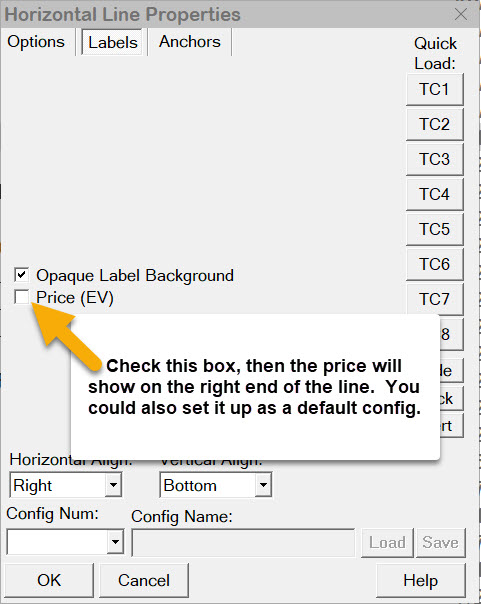 There is an option in the Horizontal line Properties pop up edit window. Just check the box "Price" on the 2nd tab of the edit window. Hope this helps, JohnR |