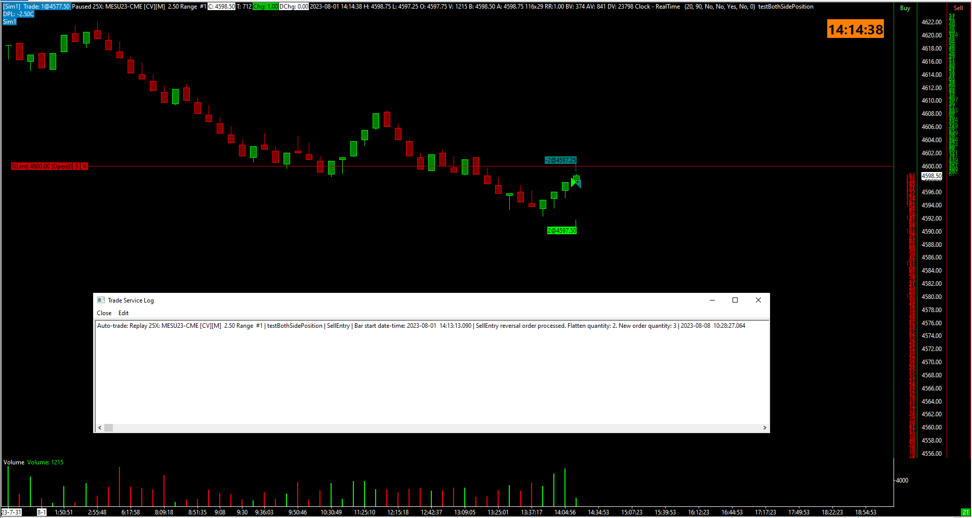 Here is a simple example code I am using to demonstrate this. It takes a long entry with 2 lots when there are two consecutive green bars printed on chart and places a limit sell order with 3 qty as soon as the entry is taken. I am also attaching a picture of the chart including the service log. You can see that as soon as I place the sell order, the position is flattened first and then the 3 lot sell order is placed. https://www.sierrachart.com/image.php?Image=1691487560369.png int32_t PlaceMarketEntry(SCStudyInterfaceRef sc, SCString longShort, int qty, SCString OrderTag) { s_SCNewOrder NewOrder; NewOrder.OrderQuantity = qty; NewOrder.OrderType = SCT_ORDERTYPE_MARKET; NewOrder.TimeInForce = SCT_TIF_GOOD_TILL_CANCELED; NewOrder.TextTag = OrderTag; if (longShort == "BUY") sc.BuyOrder(NewOrder); else sc.SellOrder(NewOrder); SCString msg; msg.Format("Market order with qty %d", qty); sc.AddMessageToLog(msg, 1); return NewOrder.InternalOrderID; } int32_t PlaceLimitEntry(SCStudyInterfaceRef sc, SCString longShort, int qty, double EntryPrice, SCString OrderTag) { s_SCNewOrder NewOrder; NewOrder.OrderQuantity = qty; NewOrder.OrderType = SCT_ORDERTYPE_LIMIT; NewOrder.TimeInForce = SCT_TIF_GOOD_TILL_CANCELED; NewOrder.TextTag = OrderTag; NewOrder.Price1 = EntryPrice; if (longShort == "BUY") sc.BuyOrder(NewOrder); else sc.SellOrder(NewOrder); SCString msg; msg.Format("Limit order - price %.02f with qty %d", EntryPrice, qty); sc.AddMessageToLog(msg, 1); return NewOrder.InternalOrderID; } SCSFExport scsf_aza_testBothSidePosition(SCStudyInterfaceRef sc) { SCString scriptName = "testBothSidePosition"; if (sc.SetDefaults) { sc.GraphName = scriptName; sc.GraphRegion = 0; //Main chart region sc.AutoLoop = 1; sc.MaximumPositionAllowed = 500; sc.AllowMultipleEntriesInSameDirection = true; sc.AllowOppositeEntryWithOpposingPositionOrOrders = true; sc.CancelAllOrdersOnEntriesAndReversals = false; sc.CancelAllWorkingOrdersOnExit = false; sc.AllowEntryWithWorkingOrders = true; sc.AllowOnlyOneTradePerBar = false; sc.SupportReversals = true; sc.MaintainTradeStatisticsAndTradesData = true; return; } if (sc.IsFullRecalculation && sc.Index == 0) sc.ClearAllPersistentData(); s_SCPositionData PositionData; sc.GetTradePosition(PositionData); if (sc.Close[sc.Index] > sc.Close[sc.Index - 1] && sc.Close[sc.Index - 1] > sc.Close[sc.Index - 2] && sc.GetBarHasClosedStatus() == BHCS_BAR_HAS_CLOSED && !sc.IsFullRecalculation) PlaceMarketEntry(sc, "BUY", 2, scriptName); if (PositionData.PositionQuantity != 0 && !PositionData.WorkingOrdersExist) { PlaceLimitEntry(sc, "SELL", 3, sc.Close[sc.Index] + 10 * sc.TickSize, scriptName); } } Date Time Of Last Edit: 2023-08-08 09:44:33