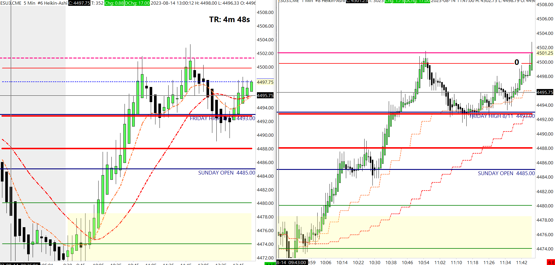 Hello - I have a 21 SMA and 9 EMA plotting on a 5-minute chart. I am then using the Price/Study overlay to view them on a 1-minute chart. Is there any way to smooth how it looks on the 1-minute chart, so it doesn't look stair stepped? See attached images. |