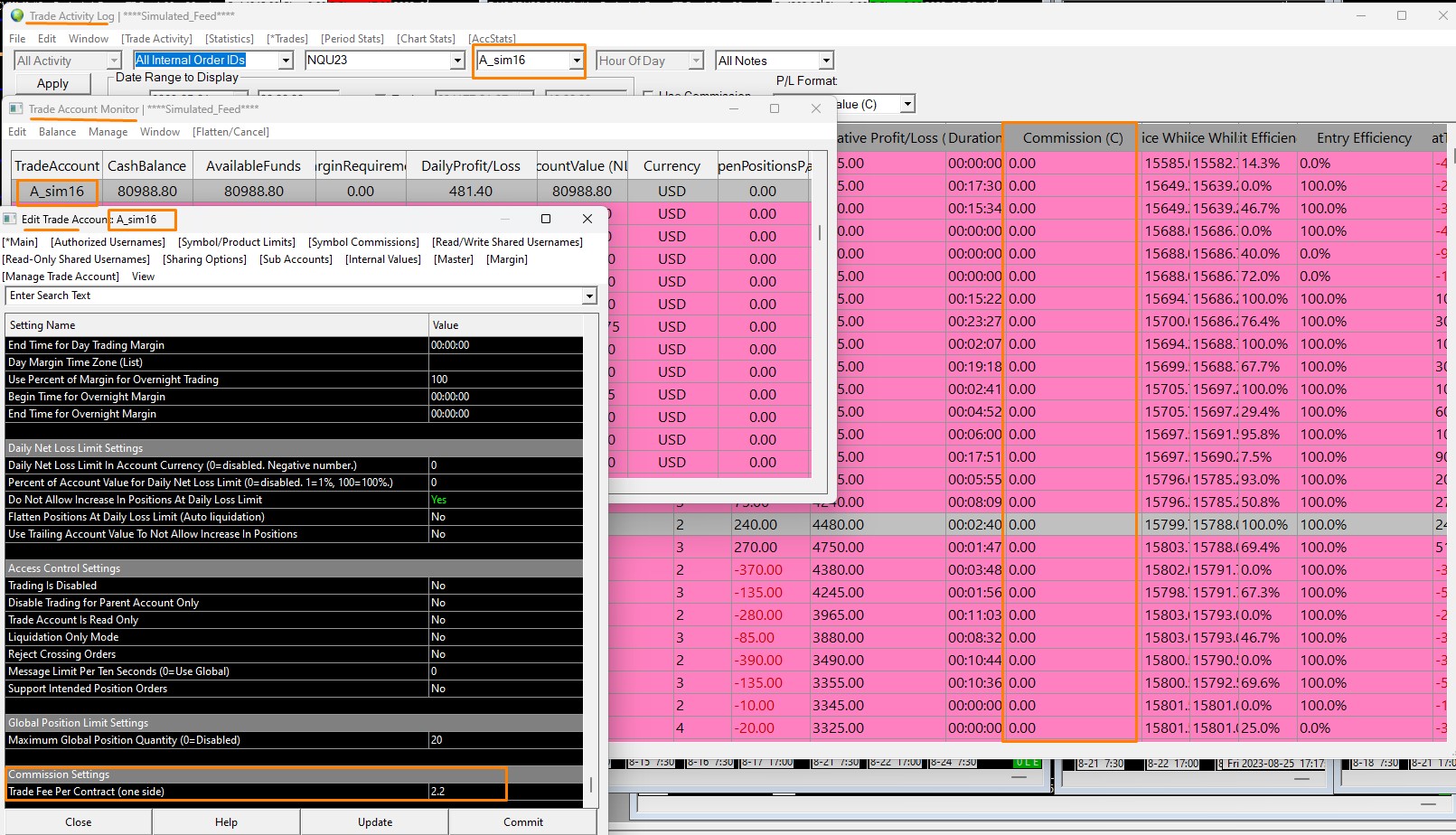 I have set the commission for both global round turn and per symbol in the symbol settings and also in the setup of the simulated trading account and yet the commission is not being charged on the trade activity log pls check the attached screenshots would be happy if you could tell me what else I need to check/set thanks |