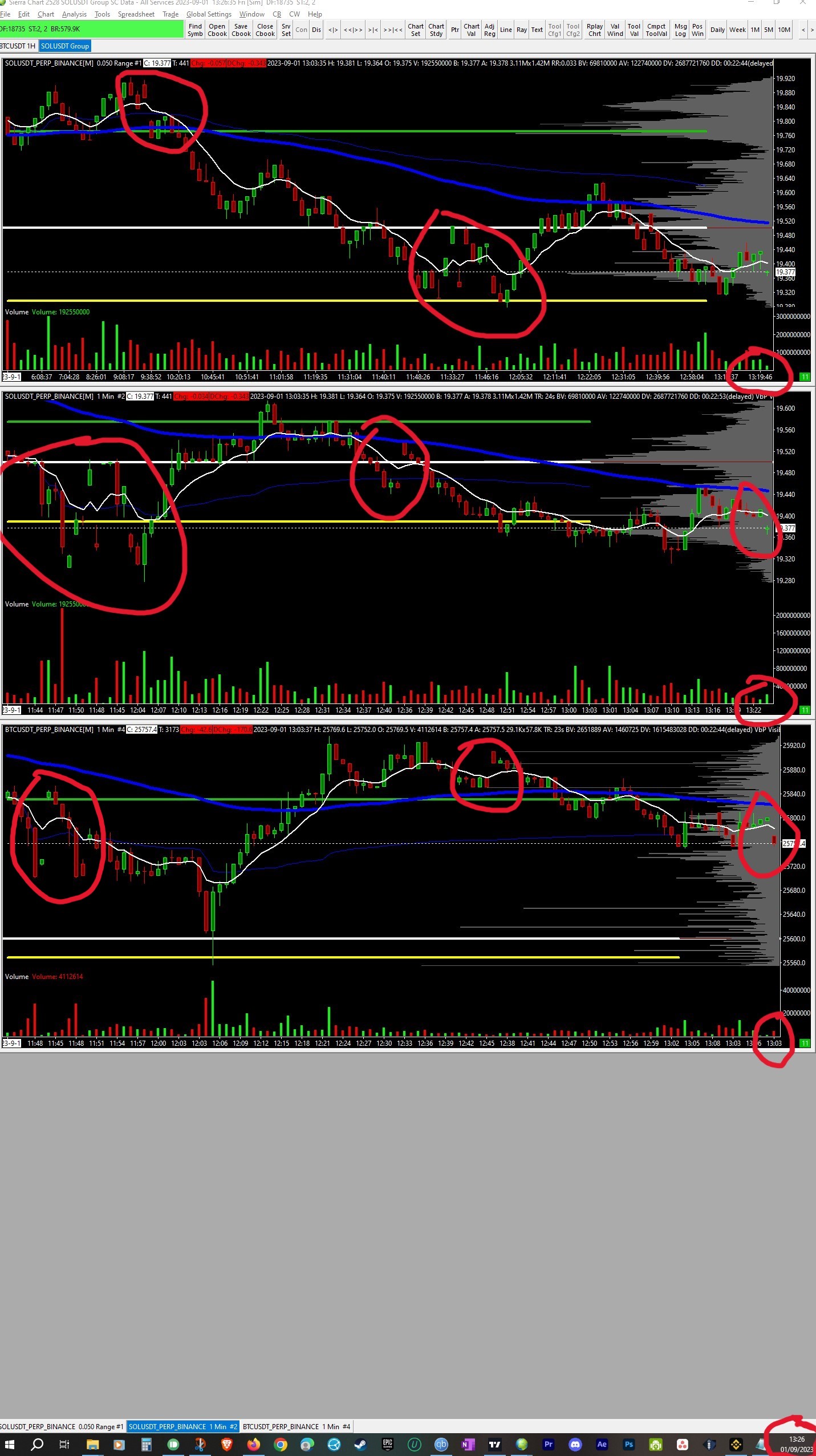 Hi, I've switched from Tradingview to Sierra Chart and have been a really successful change ever since. But lately, specially on the last three weeks I am having problems with the data not updating correctly, resulting in some serious drawbacks. I've noticed it happens whenever there's big volume movements on BTC, but today for example, it happened regardless volume increase and up to this moment (5 hours later) the data didn't synchronized. I am having to use Tradingview again (which by the way, didn't show any slow or halting on the moments that Sierra did) but it doesn't have tick charts, so I'm basically tied to Sierra. 1 - My connection seems fine, since I am able to use it to work, browse and as said above, Tradingview keeps functioning. 2- I am mostly monitoring two symbols at a time, SOL and BTC. Sometimes BTC keeps functioning while SOL stops altogether or get really delayed. I attached a screenshot of today showing the difference between 1m chart time and the PC time (by the way, GMT -03:00 in case you need to know). 3 - I tried a different PC and another internet provider but the problem seems to persist. 4 - The PC specs I'm using are at the end of the post 5 - Tried using only 1H to see if it would help in case the tick was using too much bandwidth but it didn't make any difference. 6 - I've been successfully using SC up to this point with different symbols and time frames for Binance Futures, only recently this kind of problems started happening. Can you help me? It started happening about 3 weeks ago, but it is turned more frequently to the point it is happening daily. System stats: CPU: Ryzen t 5800x Ram: 32GB DDR4 HDD: 500GB SSD (abot 200gb free) Internet connection: 1GBps |