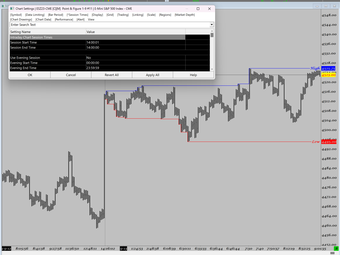 Hi, On the ES chart at ever "Session Start Time" a large bar is displayed with missing data. It doesn't matter what the "Session Start Time" is set to, it has the same issue. I attached to screen image with different "Session Start Time" and you will see it. I Edit/Download Data - Intra Day, and undated SC to current release with no difference. Regards, |