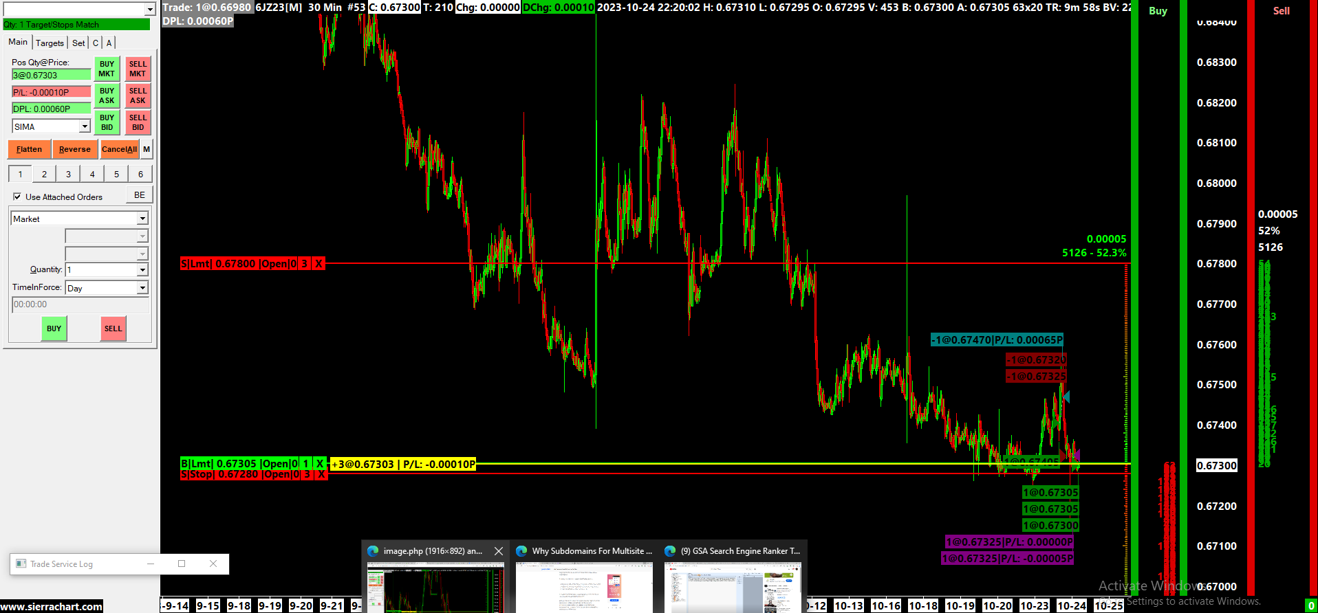 6JZ23, i.e. I've gotten a few fills way out of the spread and at times I place a limit order on the ask and it just sits there for quite some time without a fill. https://www.sierrachart.com/image.php?Image=1698179346613.png Also, please observe how when I zoom out, my sell column on the chart DOM is changing width. https://www.sierrachart.com/image.php?Image=1698179434439.png Thanks Date Time Of Last Edit: 2023-10-24 20:32:11