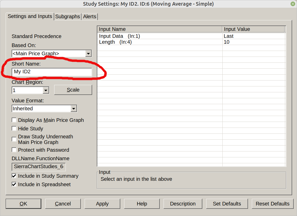 @raheemrazzak You are welcome, one of the possible option for your case is saving multiple study collections, and define buttons on the tool bar, so that each bar loads different set of study collections For ACSIL, unfortunately, I am not aware of a way to access chronological #, for the time being, this is the solution I am thinking (tested, works): Give each study an unique Short Name (see attached image) with or without space, doesn't matter, just make sure it matches exactly with the name in the code. That means it doesn't matter which order you loaded your studies, you will always be able to identify each one. I loaded Simple Moving Average, and give it a Short Name as "My ID2", the previous code would be modified as below: Then you can do whatever you want, i.e. press "q" to hide/unhide this group of studies, press "a" to hide/unhide that group of studies, etc, quite a work though if you have dozens or hundreds of studies. I will let you know if I would think of a better way to do it. #include "sierrachart.h" SCDLLName("KeyToHide") SCSFExport scsf_KeyToHide(SCStudyInterfaceRef sc) { if (sc.SetDefaults) { sc.GraphName = "Key To Hide"; sc.GraphRegion = 0; sc.AutoLoop = 1; sc.UpdateAlways = 1; sc.ReceiveCharacterEvents = 1; return; } static int VisibilityOfGroup1 {1}; static int VisibilityOfGroup2 {1}; if (sc.CharacterEventCode==113) // "q"uick hide or unhide Group One VisibilityOfGroup1 = !VisibilityOfGroup1; if (VisibilityOfGroup1) { sc.SetStudyVisibilityState(sc.GetStudyIDByName(sc.ChartNumber, "My ID2", 1), 1); //sc.SetStudyVisibilityState(sc.GetStudyIDByName(sc.ChartNumber, "My ID7", 1), 1); //sc.SetStudyVisibilityState(sc.GetStudyIDByName(sc.ChartNumber, "My ID9", 1), 1); } else { sc.SetStudyVisibilityState(sc.GetStudyIDByName(sc.ChartNumber, "My ID2", 1), 0); //sc.SetStudyVisibilityState(sc.GetStudyIDByName(sc.ChartNumber, "My ID7", 1), 0); //sc.SetStudyVisibilityState(sc.GetStudyIDByName(sc.ChartNumber, "My ID9", 1), 0); } } Date Time Of Last Edit: 2023-10-30 04:56:39