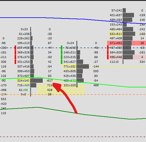 I have a numbers bar chart and have column 3 set to "Ask Vol Bid Vol Diff Diagonal 1 Side". I want to color background of any value (pos or neg) above "500" but can't find the right coloring method to do so? I've went through all of them but nothing seems to work? I set the Column 3 actual vol compare thresholds to 500, 500, 500 but still not working?