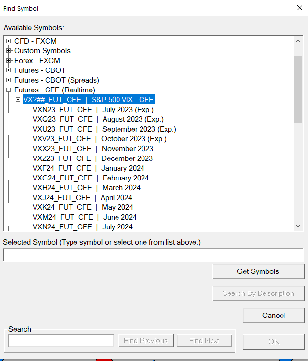 VX spreads are not listed like other future products are.