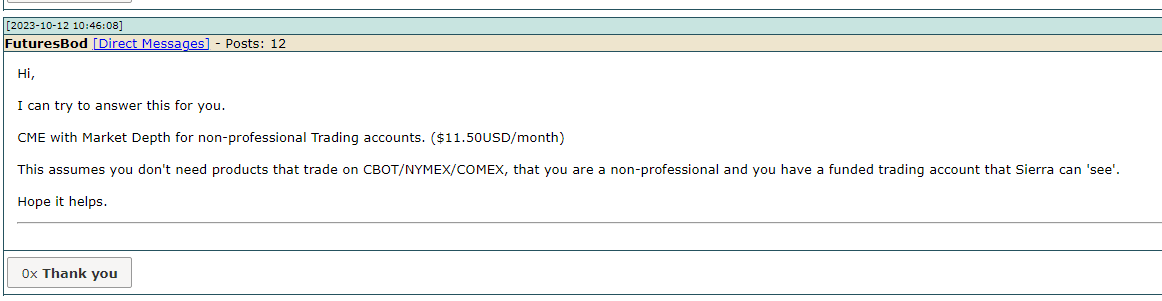 Hello Team, Newbie here. Just purchased package 12. I am interested in subscribing for the the CME with Market Depth for non-professional. Currently it is listed as 23$ per month. I went through some of the posts from a month ago in the support board and they mention the price as 11.50$ (image attached). Has the price doubled in a month? Please help me understand the exchange fee pricing. Thank you! |