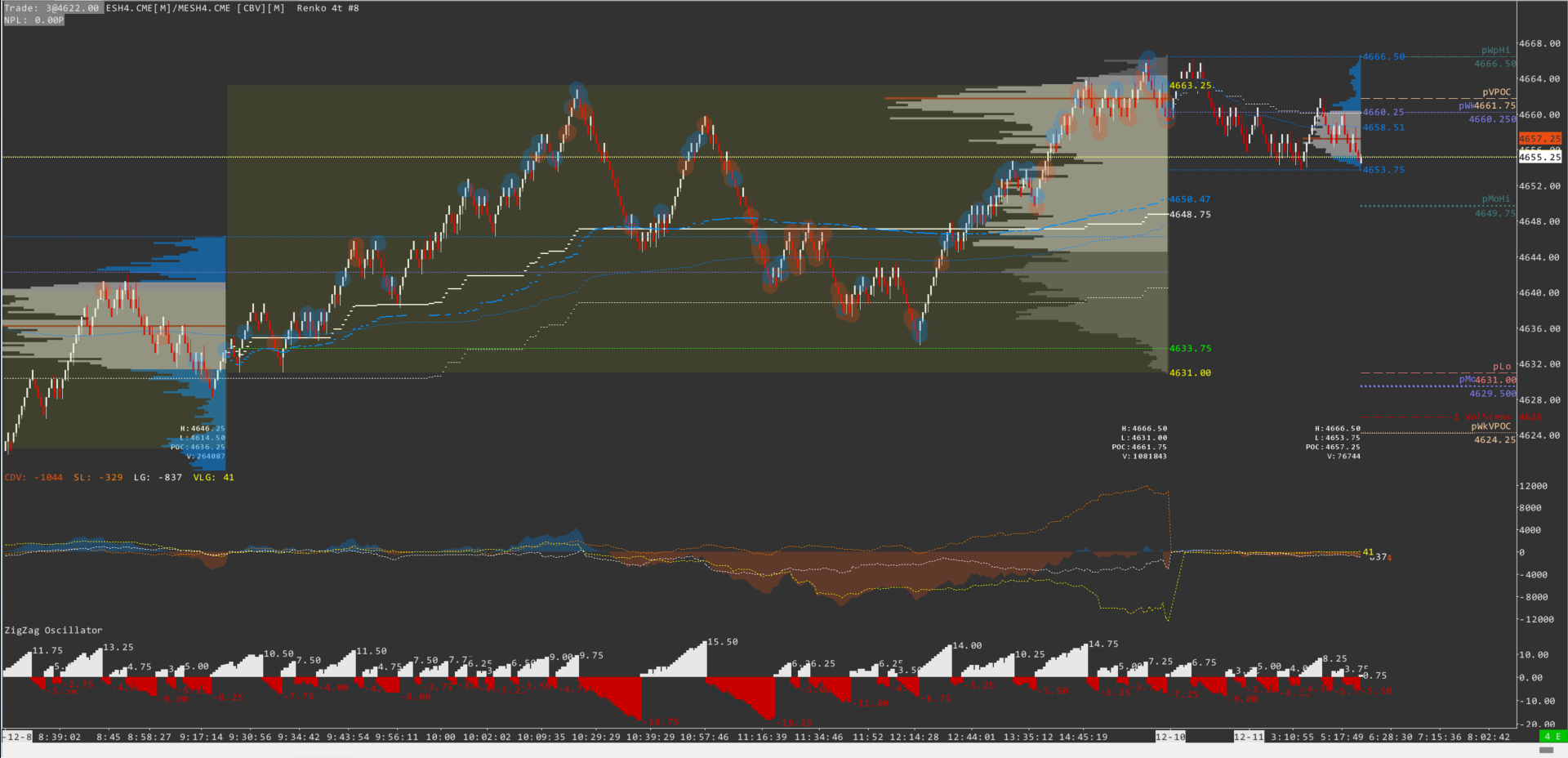 Aftre the roll this morning I have the following issues in my chartbook: 1/ the Study/Overlay study for the RTH-VWAP in my full session chart is not displayed as it's supposed to be but it's missing some pieces (look at the screenshoots attached, lines in blue) 2/ the Volume by price in the RTH chart is displayed only for the last day and not for the days before. What has happened? How can I fix these? Thanks |