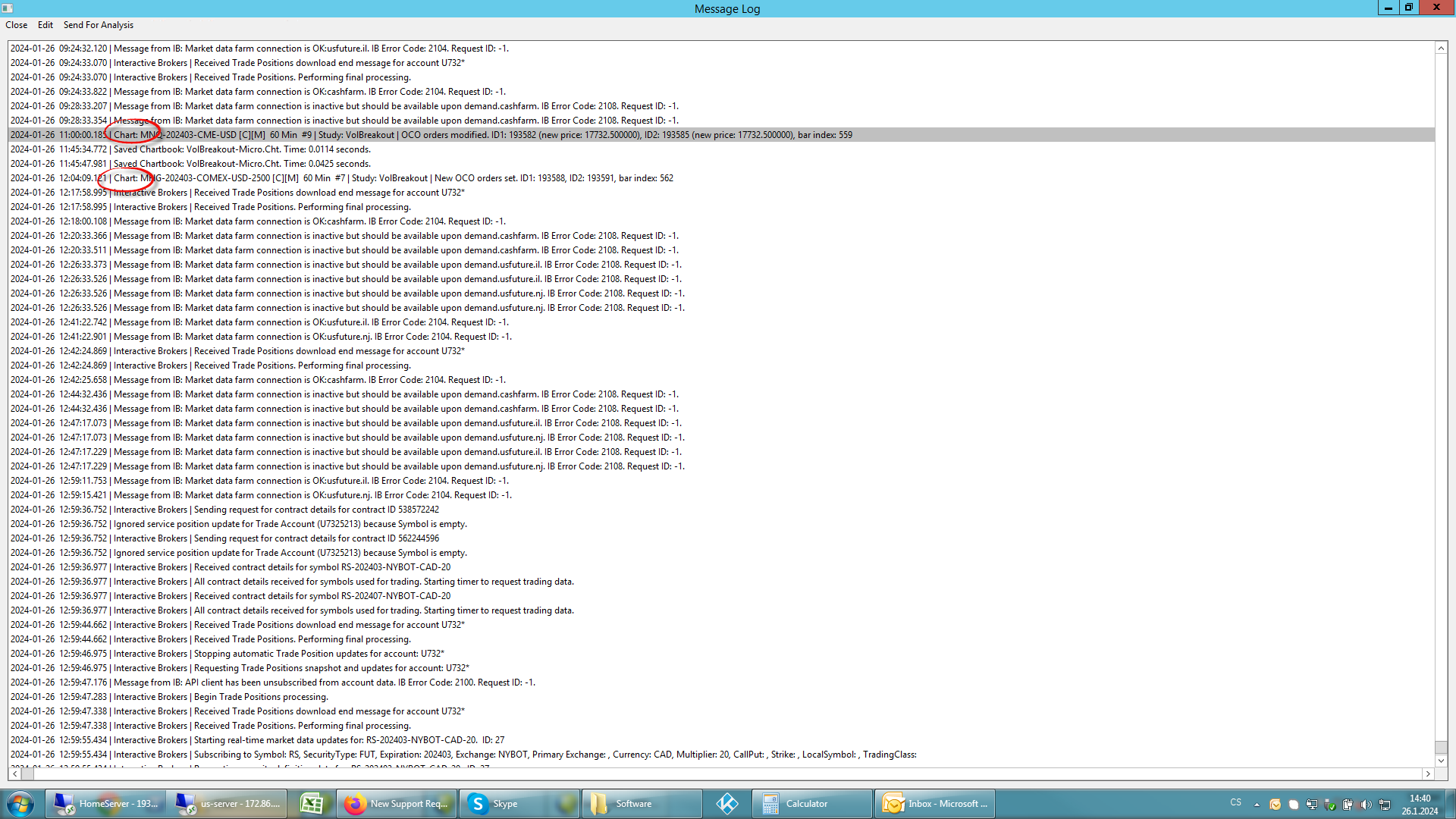 I am unable to distinguish my study messages in a million of others from IB API, could you add some "message log filter" .. I would type in "Chart: " and see only message from my strategies - studies currently reading logs is a nightmare :-) Date Time Of Last Edit: 2024-01-26 13:42:44
