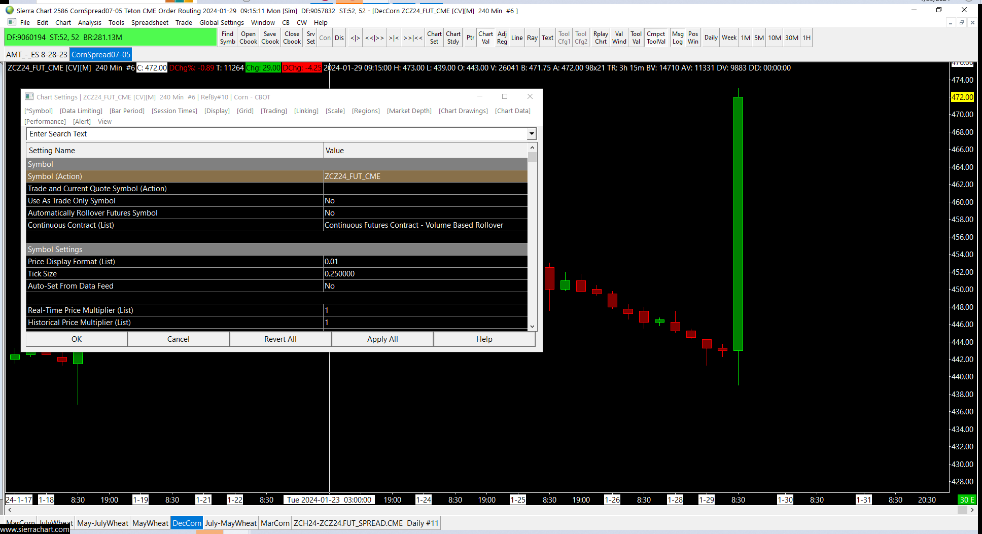 For some reason the 2024 Dec Corn chart is not charting correctly. Showing an almost .30 candle today, that is not accurate, https://www.sierrachart.com/image.php?Image=1706541312376.png