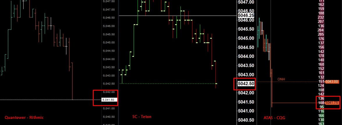 Thank you, my other question is about latency on SC. I'm currently comparing Quantower with Rithmic (Chicago Servers), SC with Teton and ATAS with CQG. I have a screenshot (attached) where you can see that SC is late to Quantower last price by 4 ticks, usually it's late by 1 tick here and there but 4 ticks is a bit too much. Is there a way to improve this and what is this caused by? |
